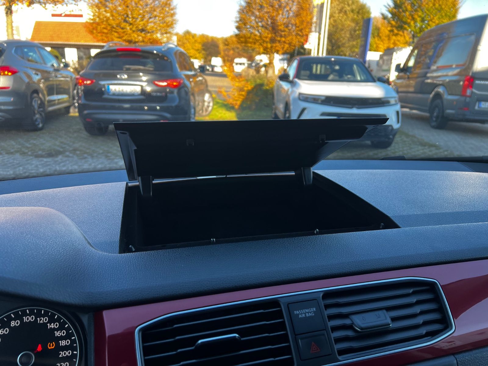 Sonderausstattung:App-Connect und 2 USB-Anschlüsse (iPhone / iPod) mit AUX-IN, Audio-Navigationssystem Discover Media (Bluetooth, Touchscreen-Farbdisplay, SD-Karten-Schnittstelle), Außenspiegel elektr. anklappbar, Bi-Xenon-Scheinwerfer mit dynamischem Kurvenlicht, Bodenbelag vorn und im Fahrgast-/Laderaum (Gummi), Entfall 3.Sitzreihe, Fahrassistenz-System: Autom. Distanzregelung (ACC inkl. Stop&Go-Funktion), Fahrassistenz-System: Fernlichtregulierung (Light Assist), Fahrassistenz-System: Parklenkassistent (Park Assist), Heckflügeltüren mit Verglasung, Innenausstattung: Dekoreinlagen Rot, Innenleuchten im Fahrerhaus: LED, Ladekantenschutz (silber), Laderaumtrennwand hoch (Gitter, verstellbar), Lenkrad (Leder) mit Multifunktion und Schaltfunktion, Leseleuchten hinten LED, LM-Felgen 6x17 (Madrid, rot), LM-Felgen 6x17 (Madrid, schwarz glanzgedreht), Metallic-Lackierung, Sitzlehne vorn rechts umklappbar, Winterbereifung zusätzlich (Kundenangabe erforderlich)